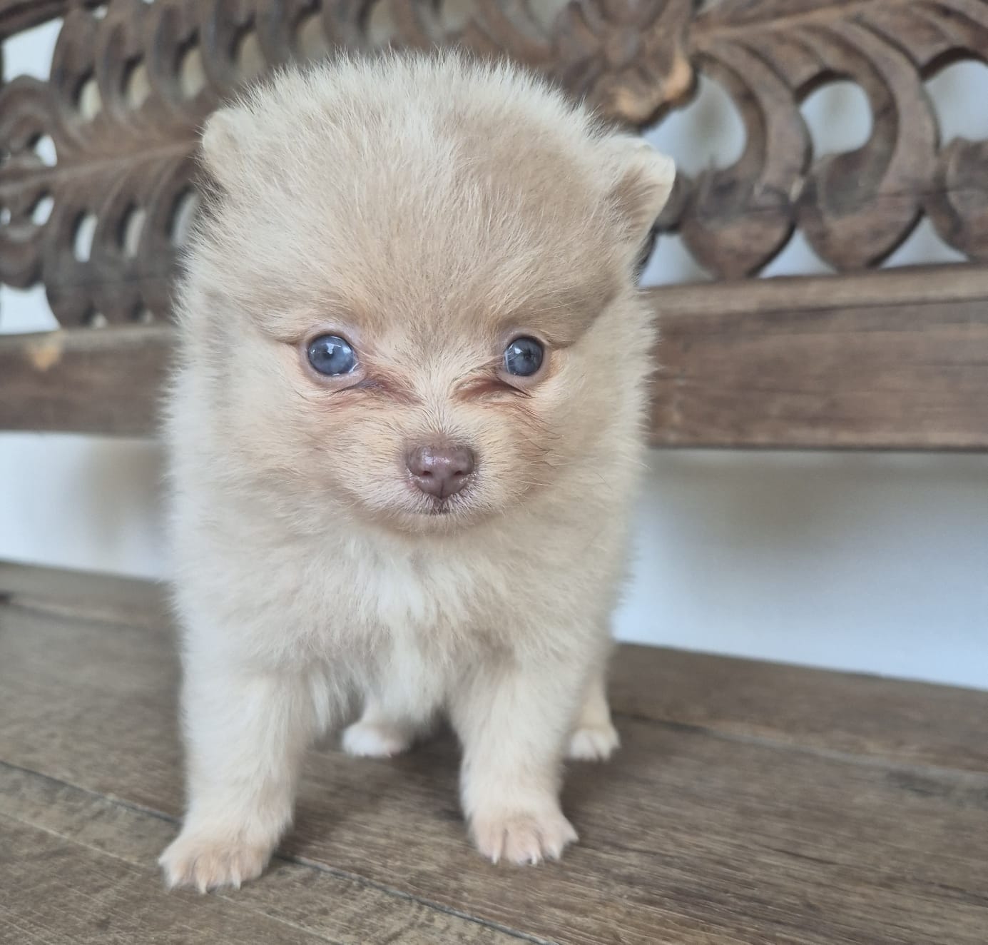 1 - Escribe en el asunto del mensaje (Error humano) 2 - Adjunta audios, vídeos o imágenes que evidencien el incumplimiento. 3 - Escribe el mensaje con la dirección URL del producto. 4 - El destinatario de correo es pqr@comerciovirtualseguro.comCachorro Pomerania macho, tamaño pequeño y pelaje abundante, característico de la raza.